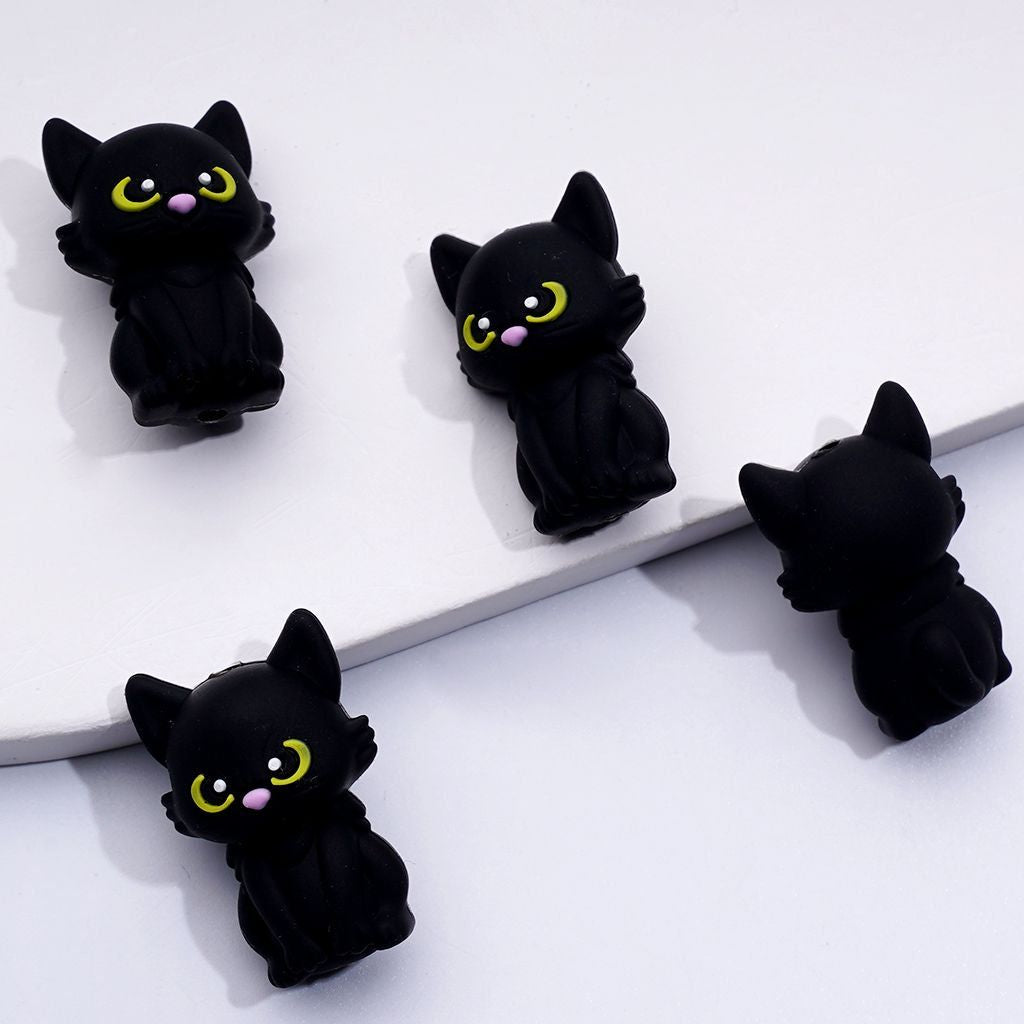 3D Little Black Cat Silicone Focal Beads with Yellow & Green Eyes, Perfect for Animal Crafting Projects |