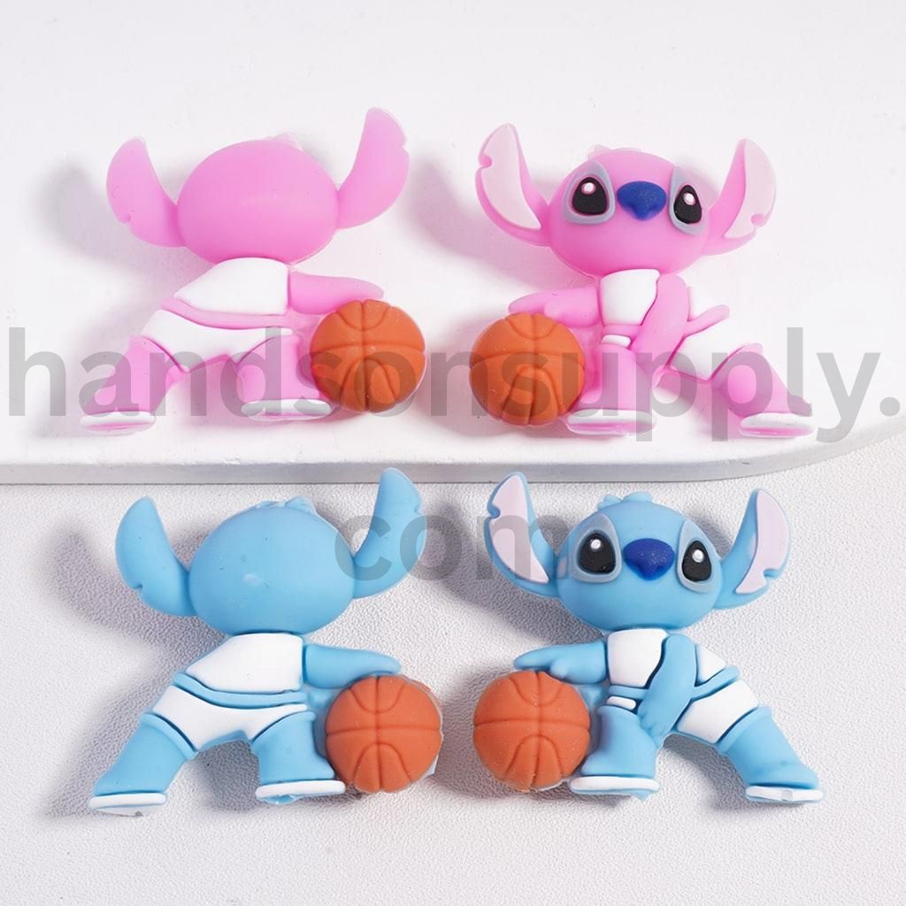 3D Sporty Cartoon Pink & Blue Stic Ange Playing Basketball Silicone Focal Beads
