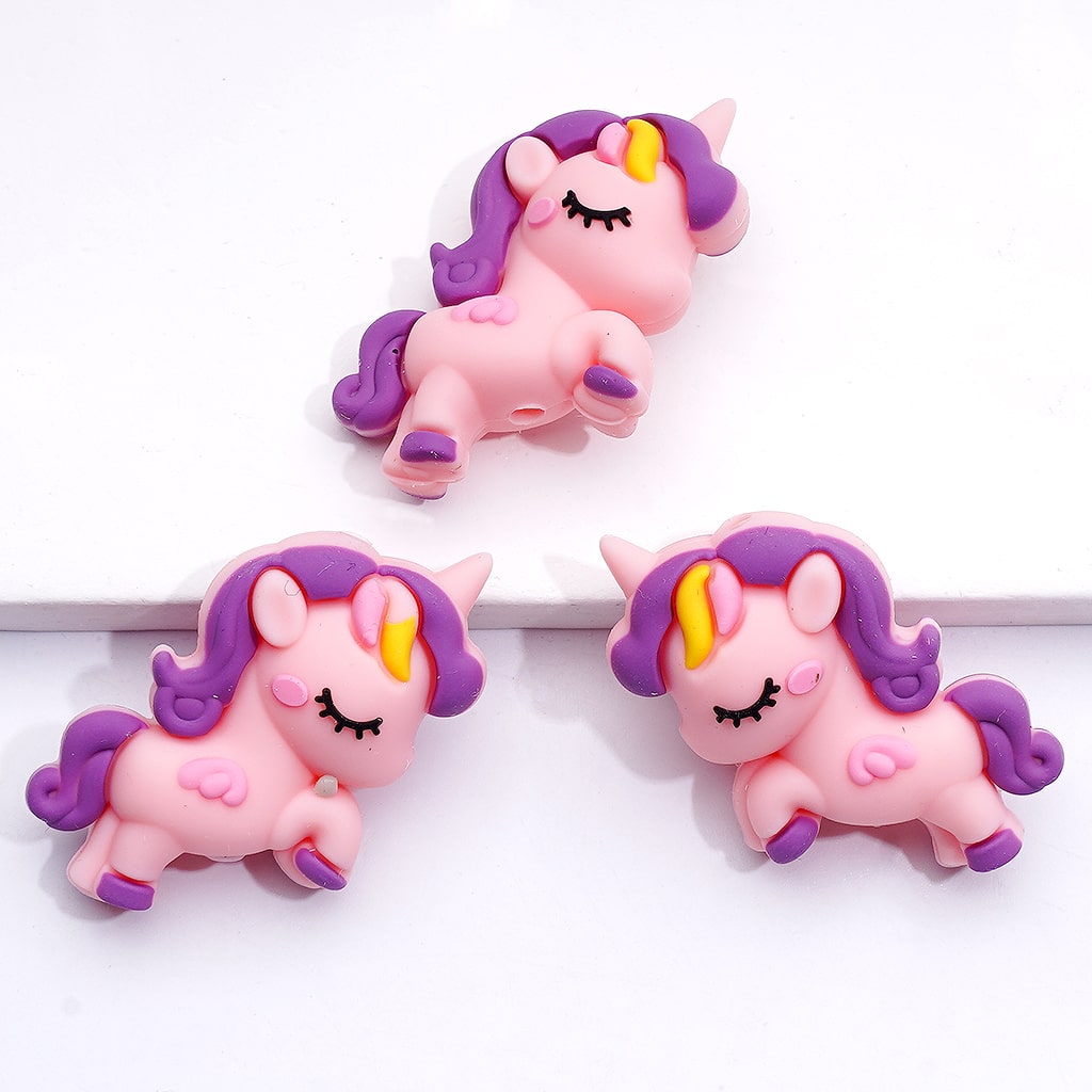3D Unicorn Purple Mane & Tail Silicone Focal Beads Multi-Color Mix