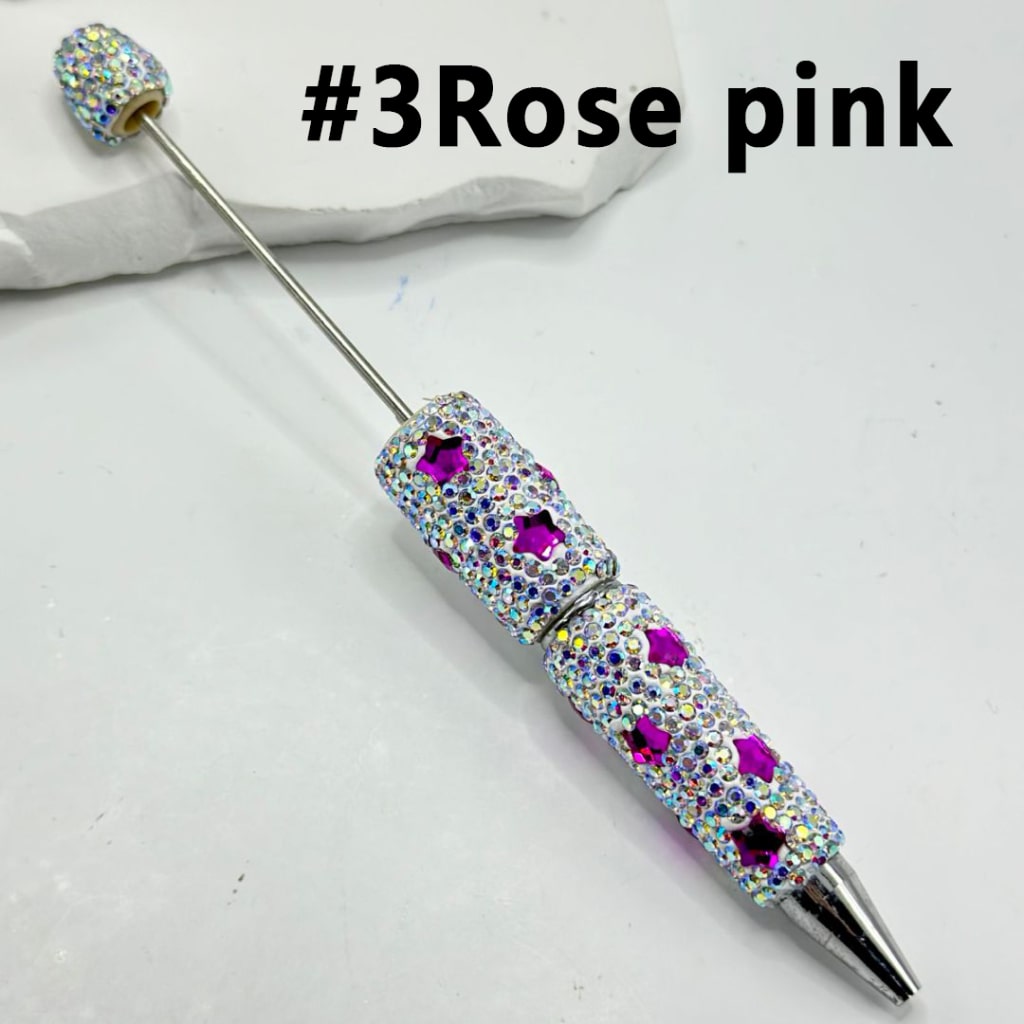 Beadable Clay Pens Covered with Multi-Color Stars and Mini AB Rhinestones, Entire Pen Decorated