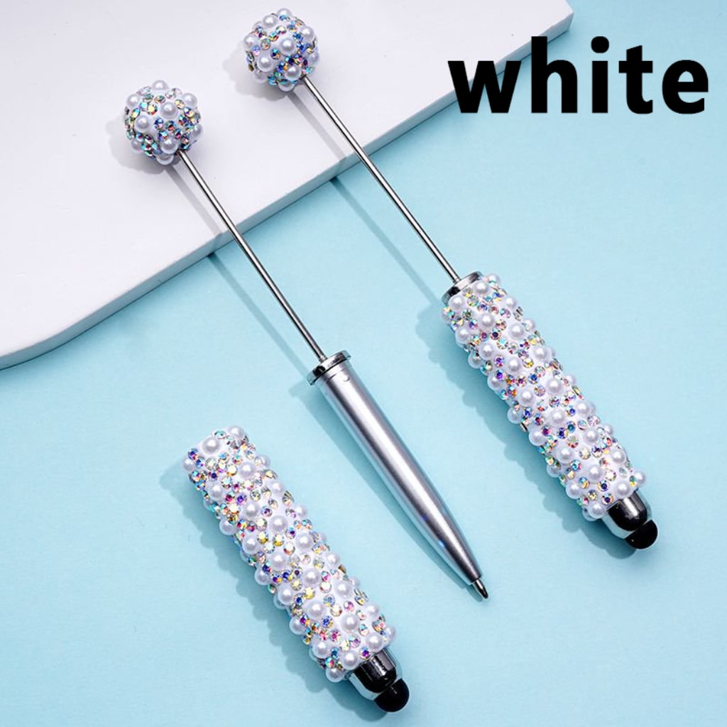 | Beadable Clay Stylus Pens with AB Rhinestones White Pearls Covered the Entire Pen |