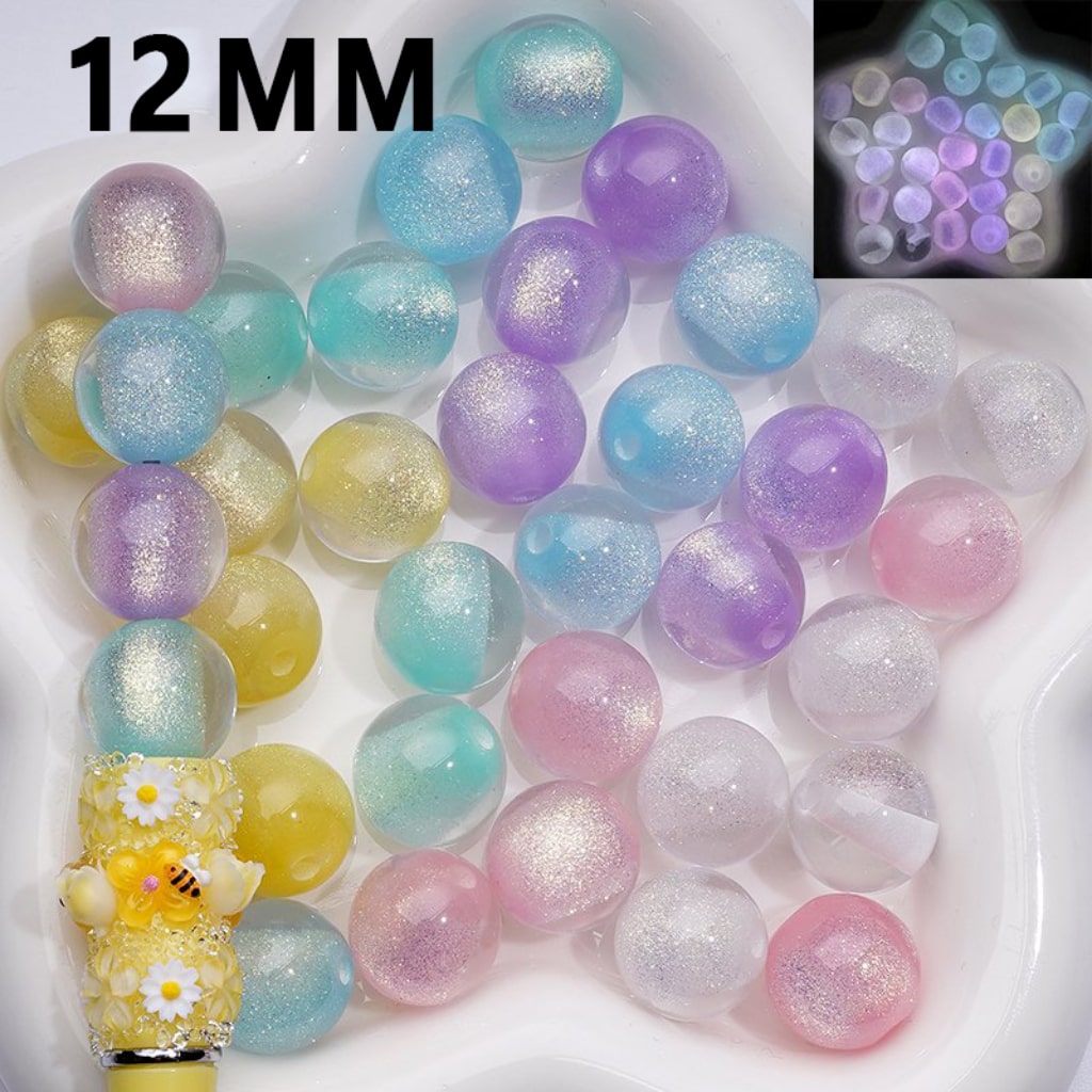 | Bling Bling Luminous Shiny Glitter Half Sugar Core Round Acrylic Beads, 12MM |