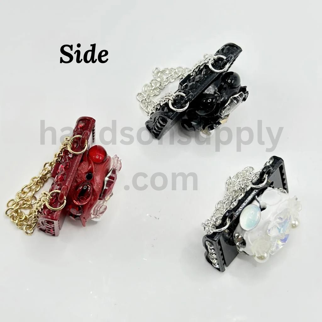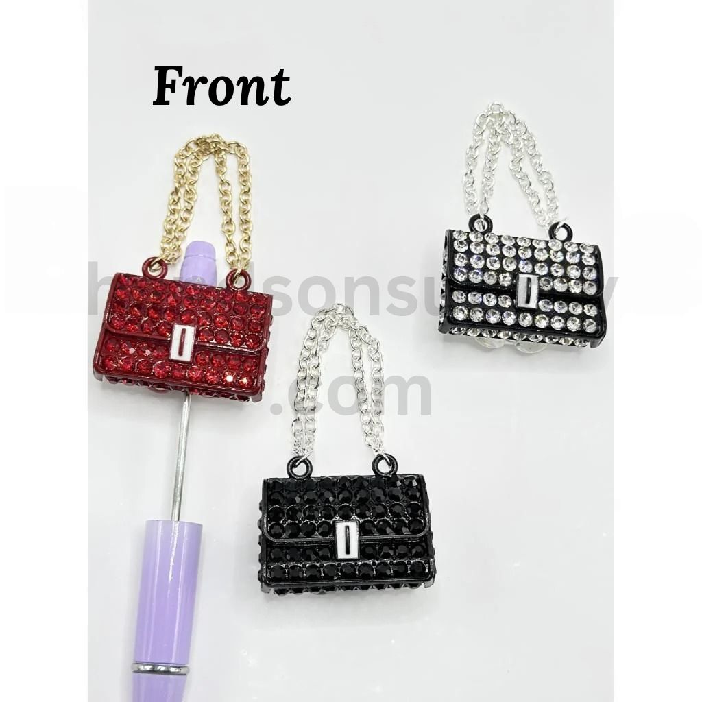 Bling Lady Handbag Clay Beads Rhinestones Pearls, Flowers & Butterfly Heart Charm with Hanging Chain Clay Beads, Around 68MM Long (Including the Hanging Chain)