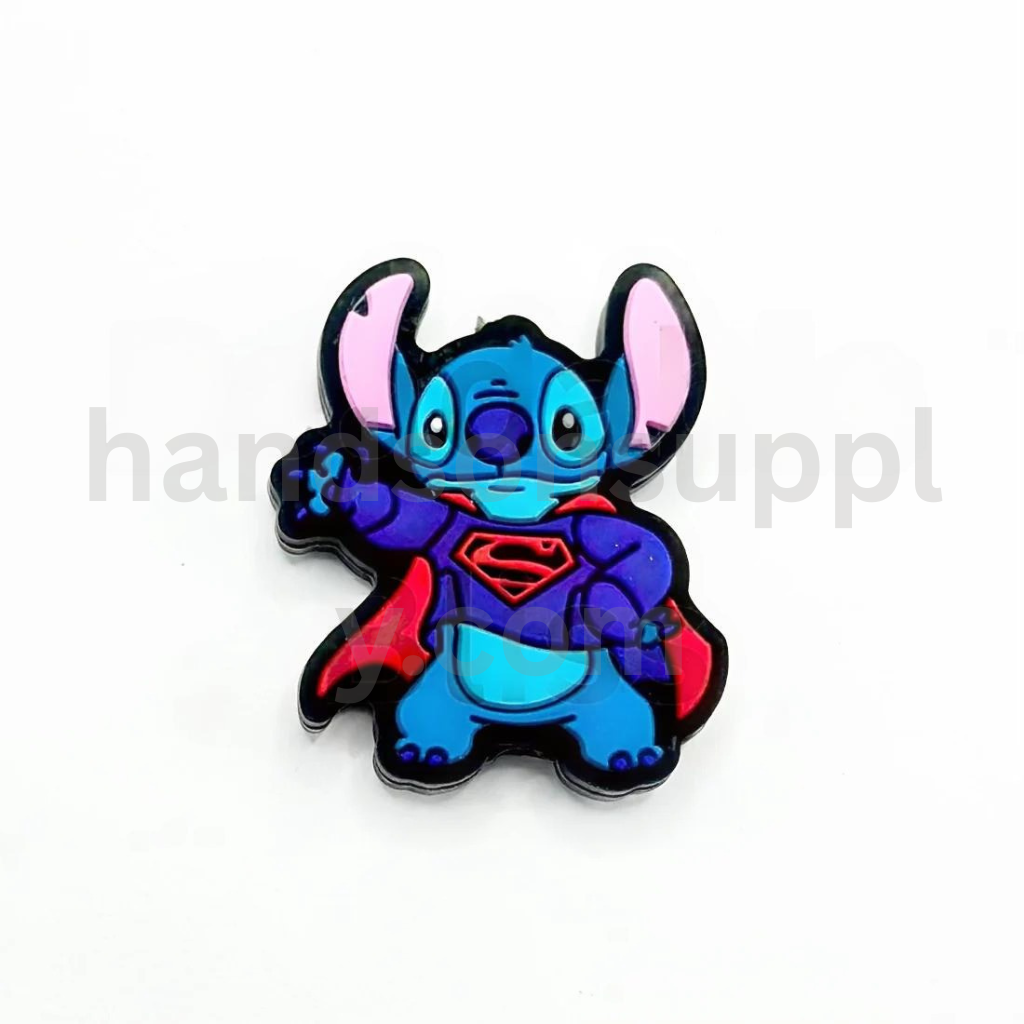 Blue Stitch Character with USA Flag Glasses Design Silicone Focal Beads