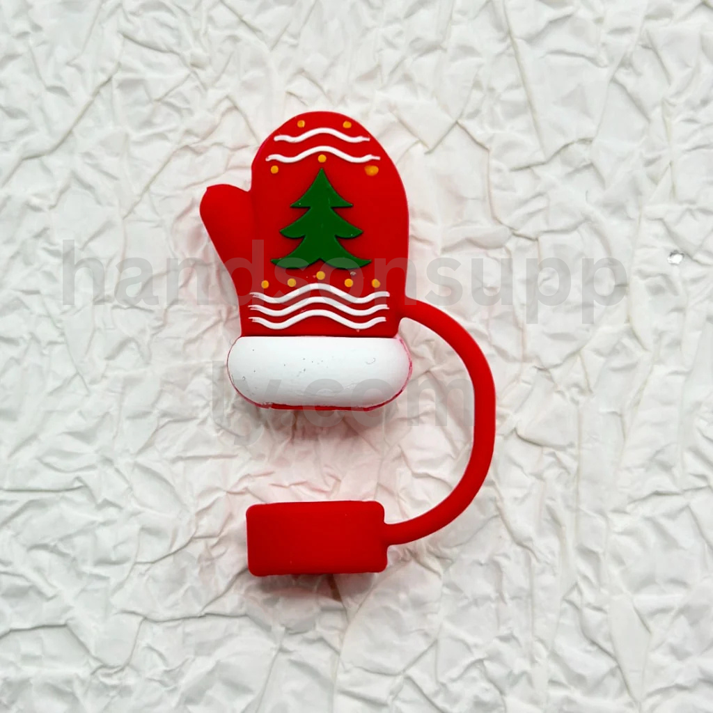 Christmas Holiday Cup Accessories in Food Grade Material Silicone Straw Toppers