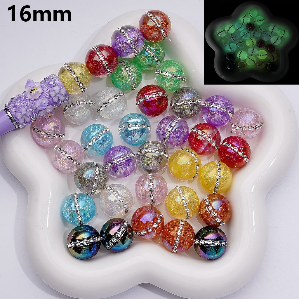 Clear Rhinestones Chains Luminous Glitter Sugar Core Inside Acrylic Beads 16MM