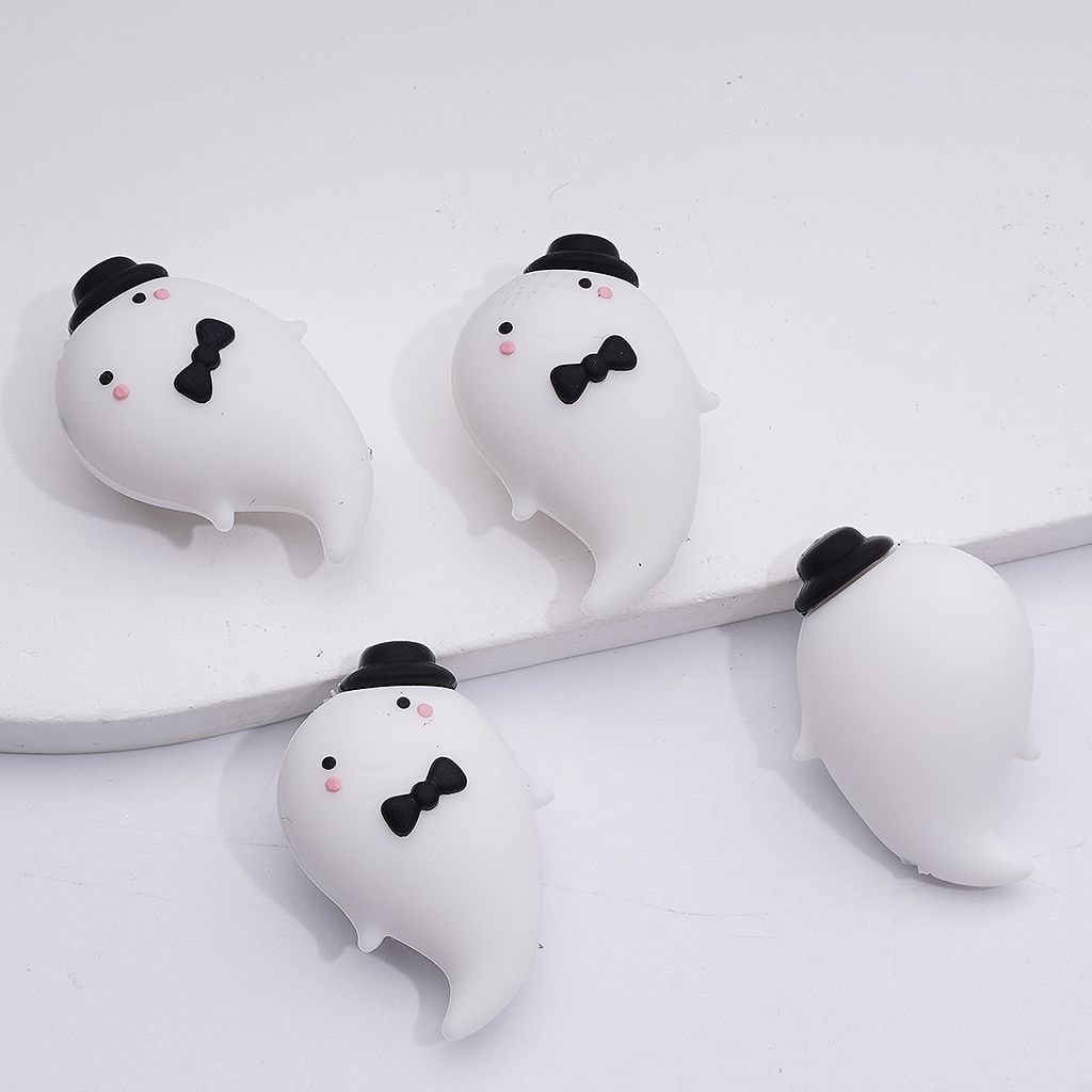 Cute 3D Ghost with Bow Tie and Black Hat Halloween Silicone Focal Beads