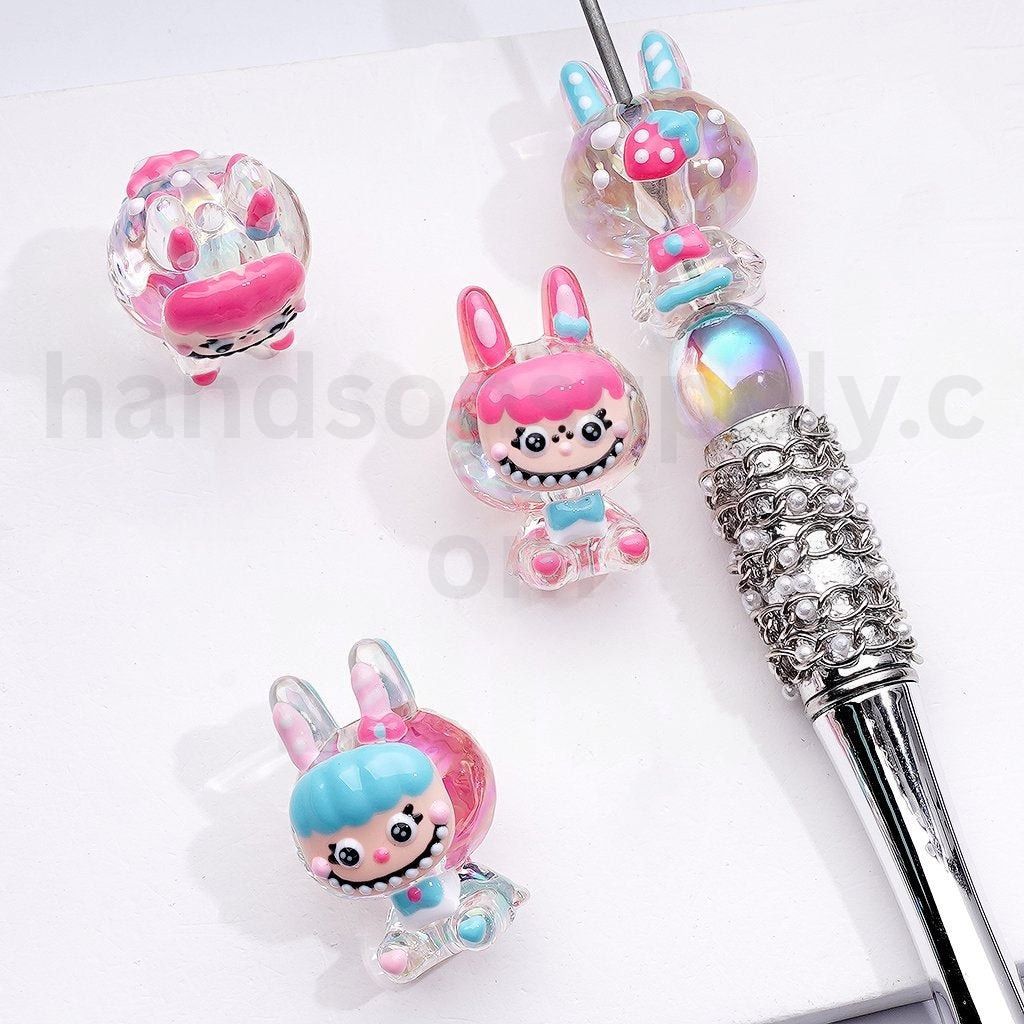 Cute Clear Labub Hand Painted Acrylic Beads Mix, 30*20MM