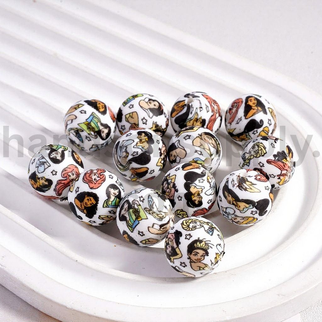 Disney Royal Girl Printed With Mini Star Round Silicone Beads 15MM, Z-00305
