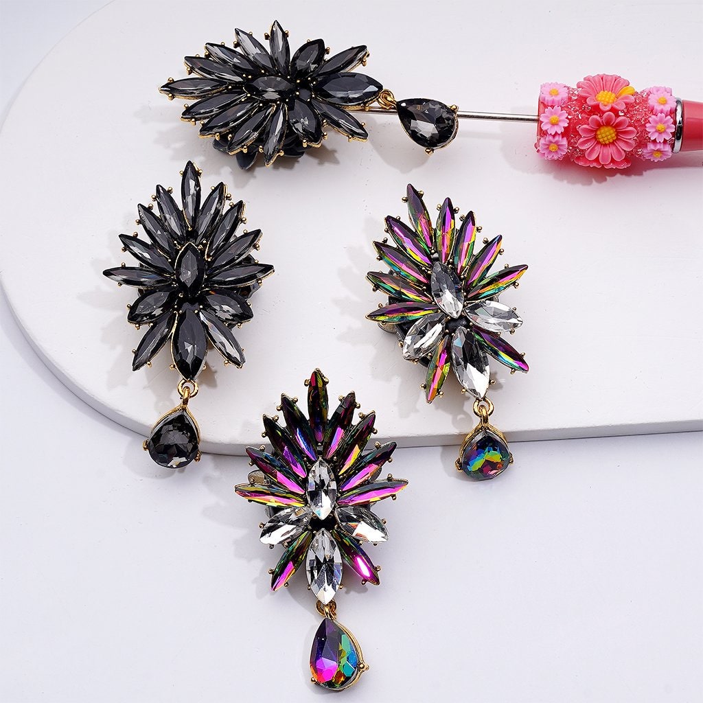 Fancy Gold Alloy Earrings Bling Bling with Shiny Rhinestones White Pearls Cute Hearts Butterflies Snowflakes Clay Beads Pendants, Around 65*33*16MM