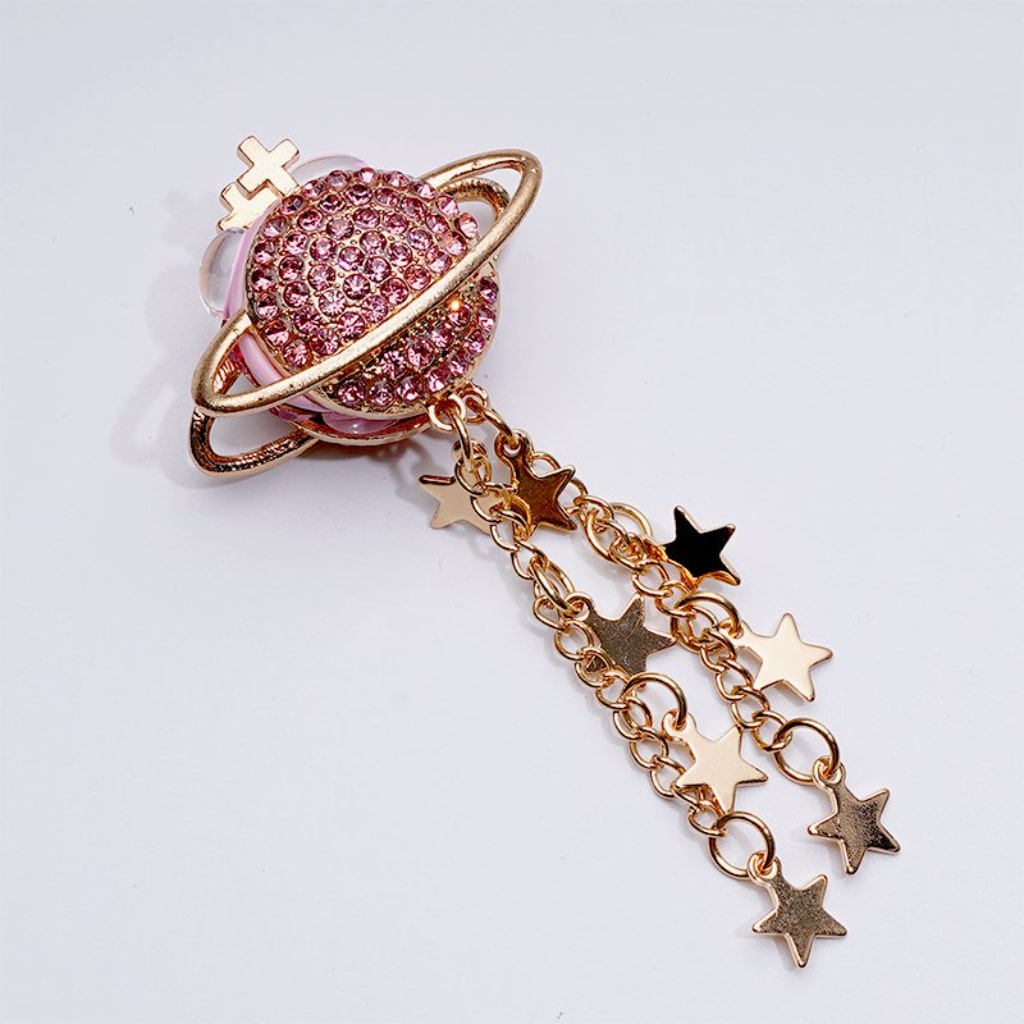 Fancy Gold Alloy Cross Star Chains Planet Saturn with Colorful Shiny Rhinestones Clay Beads, Around 37*85MM