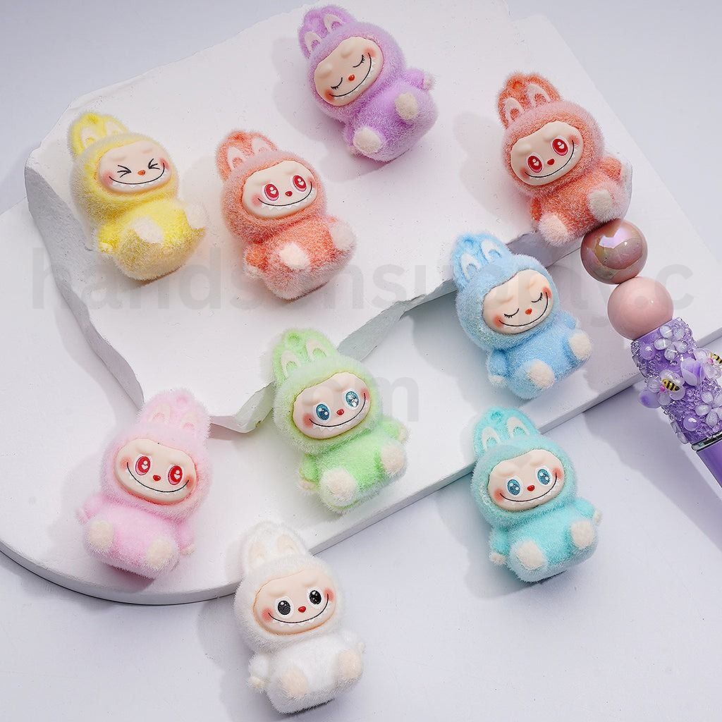 Flocked Multi-Color Monster Doll with Hided Dangle Ring Pendant Cute Pen Topper Acrylic Beads Jewelry Accessories, 26*40MM