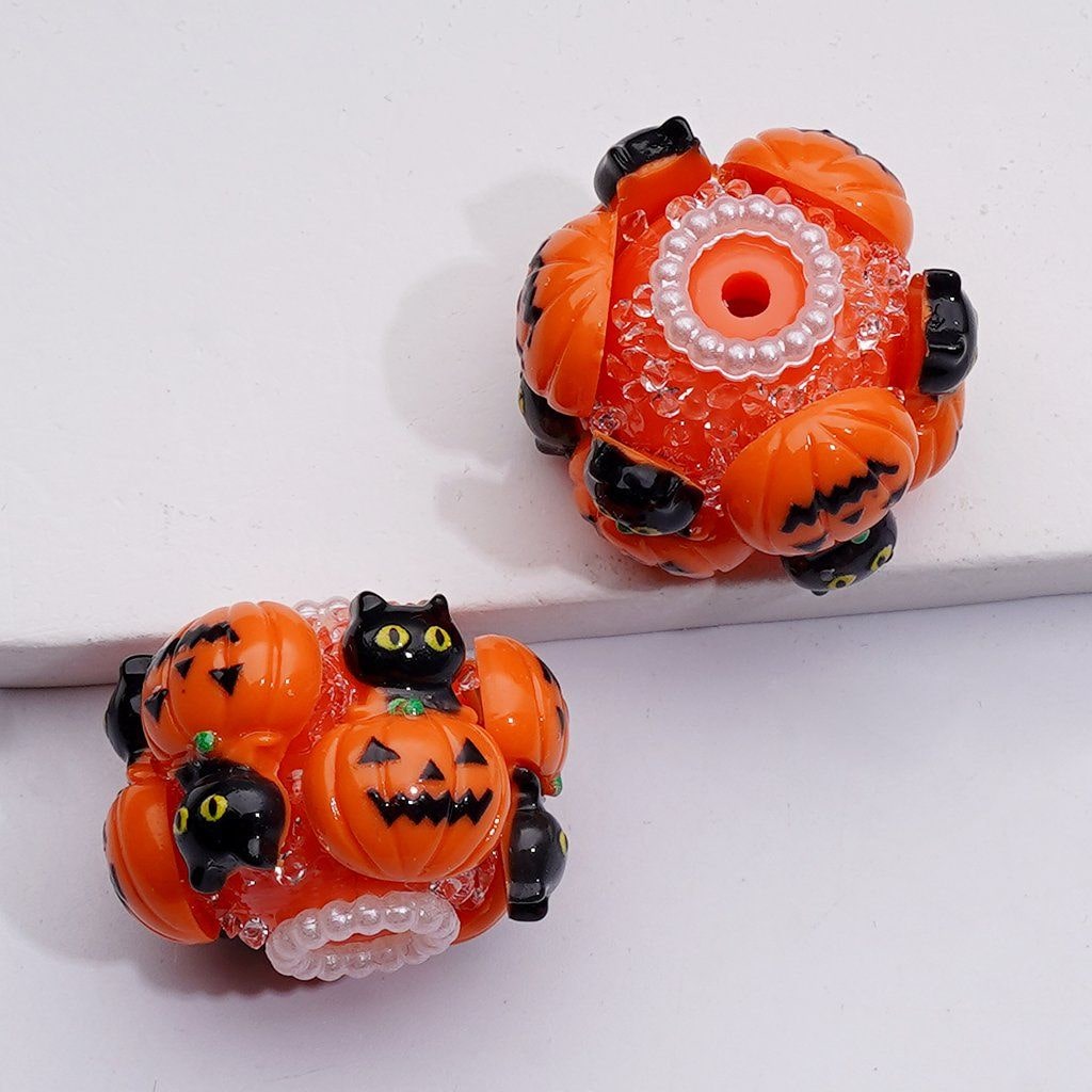 Ghost Face Pumpkin Orange Color Halloween Little Black Cat Clear Sugar White Pearls Loop Acrylic Beads, Around 22*18MM