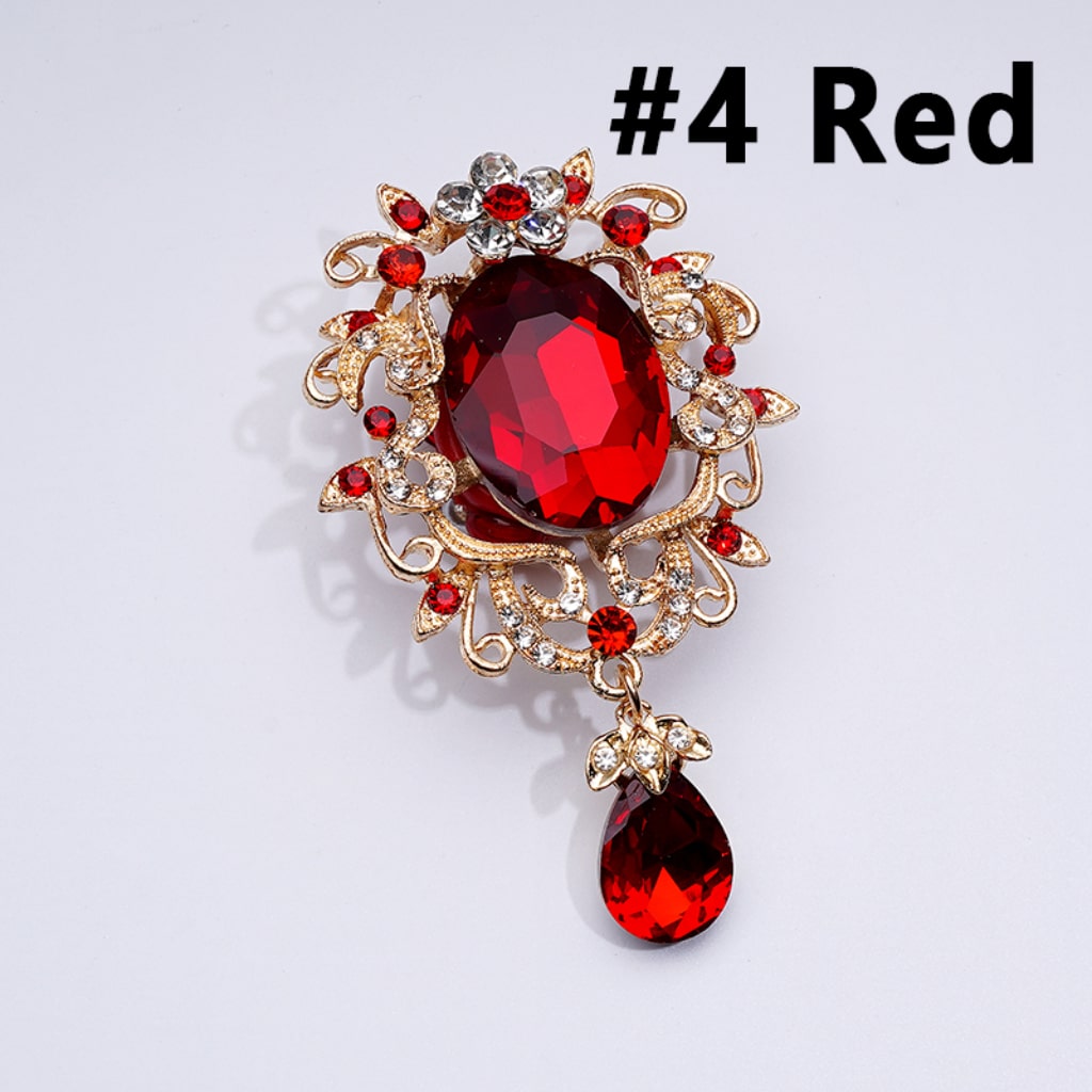 Gold Alloy Delicate Fancy Flower with Shiny Rhinestones Large Red Oval Rhinestone Inside Pendants Shiny Hearts White Pearls Round Clay Beads, Around 50*82MM |