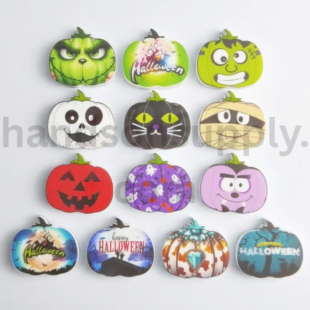 Green Monster, Black Cat & Ghost Mix Round, Flat, Character Halloween Shapes Silicone Focal Beads Random Mix