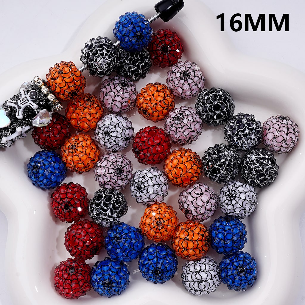 Halloween Beads in Solid Color, Clear Rhinestones Black White Spider Web Stripes Round Acrylic beads 16MM