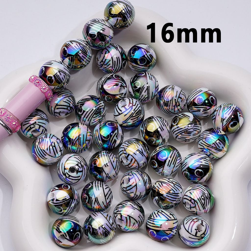 Halloween Ghost Acrylic Beads with UV Finish and Gauze Design, Round Shape, 16MM