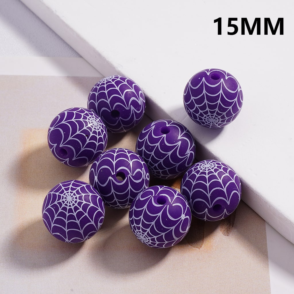 Halloween Themed Spider Web Purple Round Silicone Beads 15MM