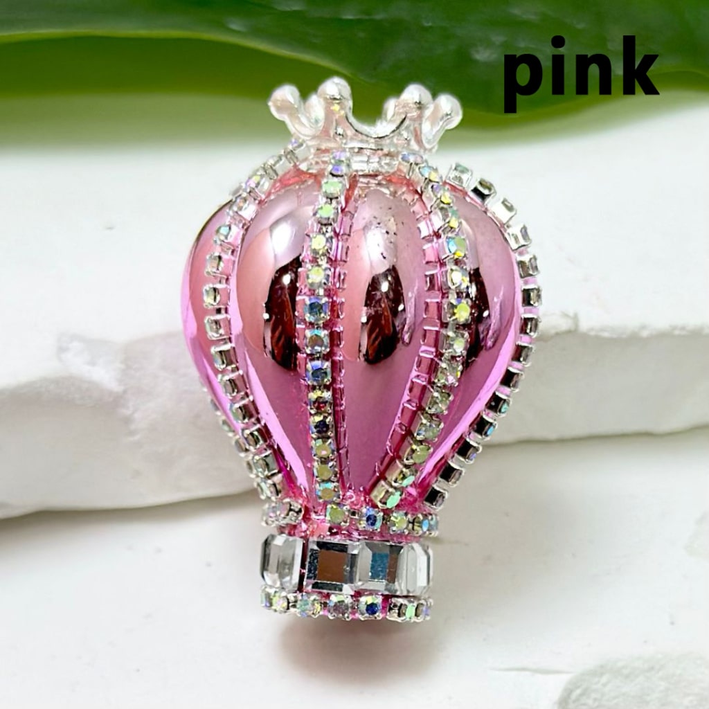 Hot Air Balloon Metallic Color Acrylic Beads with Silver Alloy Crown AB Rhinestones Chains, Around 36*25MM