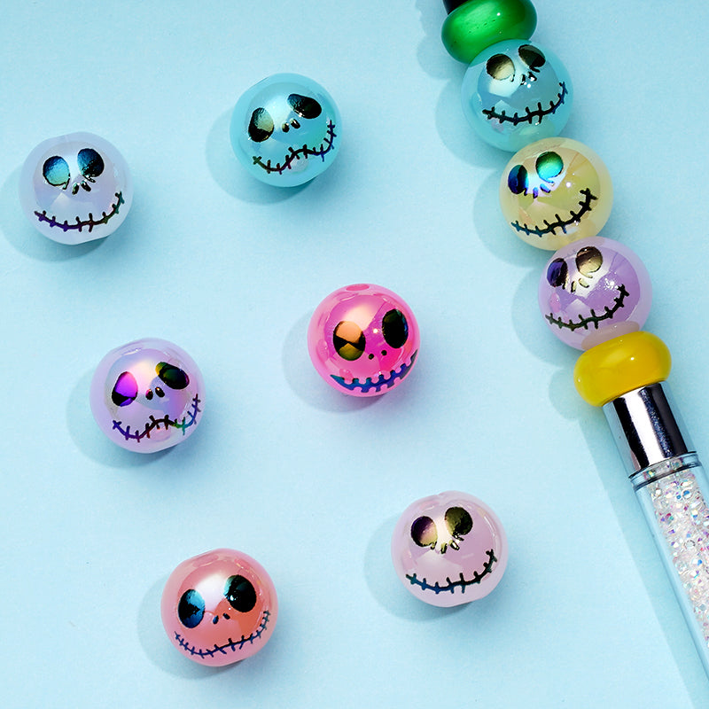Jack Face Prints with Jelly Color Acrylic Beads, Random Mix, 16MM |