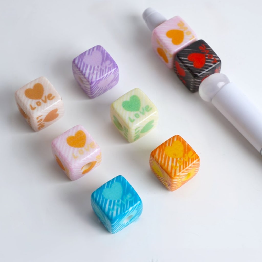 | Love Square Cube Cute Colorful Hearts Acrylic Beads, Random Mix, Around 15MM |