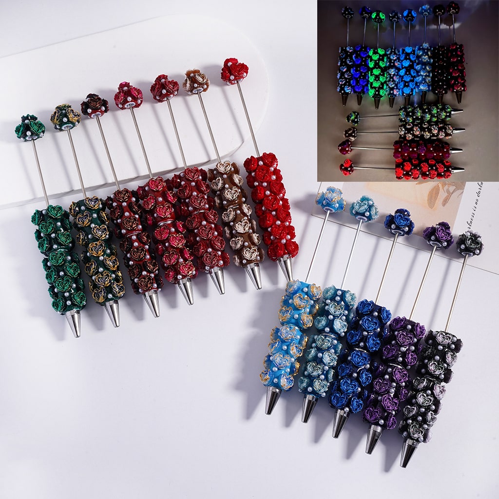 Luminous Heart Shaped Cute Mini Rose Flower Design with White Pearls Beadable Clay Pen