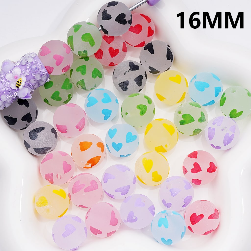 Multi-Color Heart Printed Frosted Acrylic Beads, 16MM Round Single Color Option Requires 200pcs Full Bag