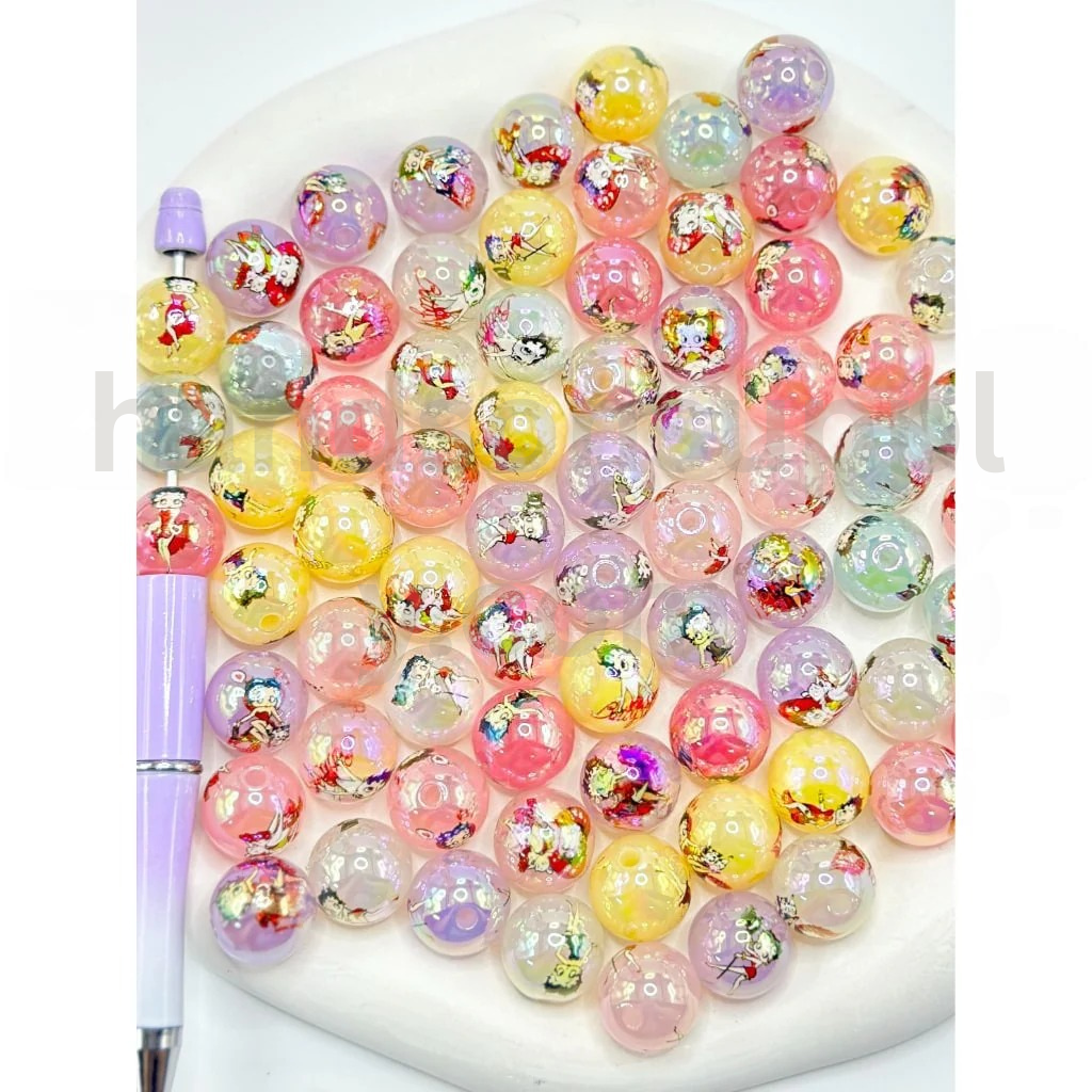 Old Girl Character Cartoon Theme Jelly Color 16MM Assorted Mix Character Acrylic Beads