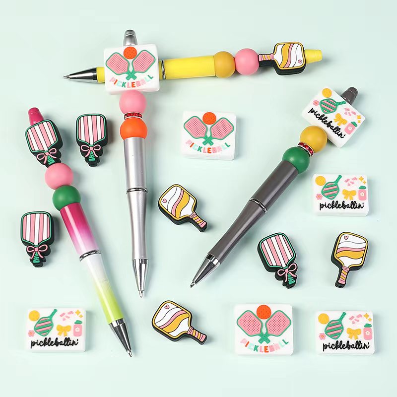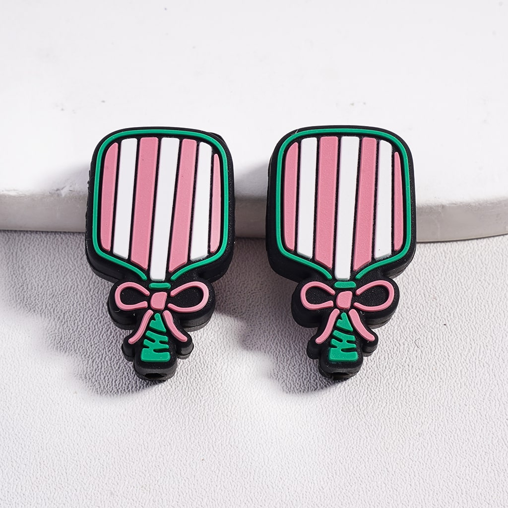 Pickleball Racket Theme Series White Square Shape Silicone Focal Bead