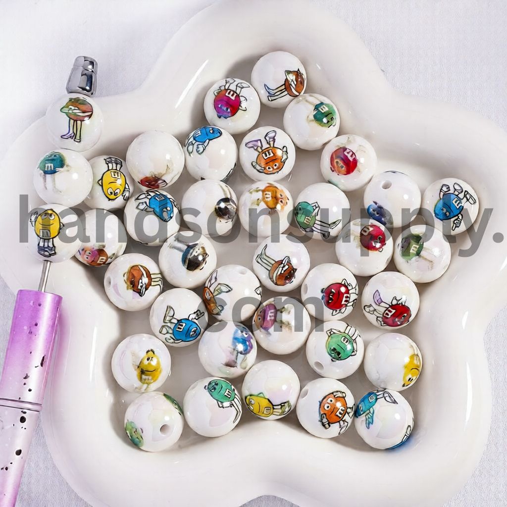 Semi Clear Two Blue Robot Cat Characters and Glitter Inside Round Acrylic Beads for Bracelet 16mm