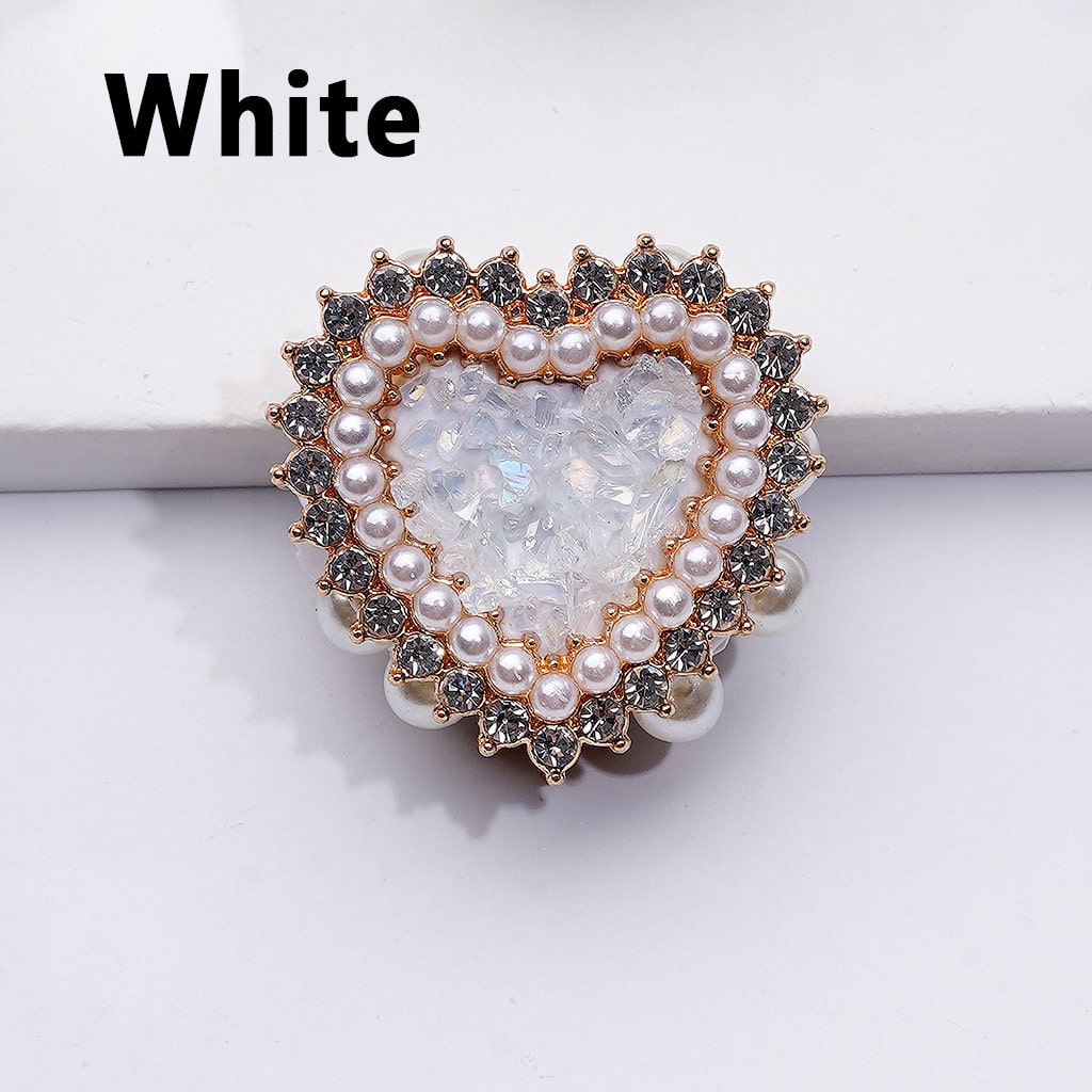 Shiny Rhinestones White Pearls Bling Bling Fancy Gold Alloy Heart with Mini Stones Rocks Clay Beads, Around 28*28*13MM