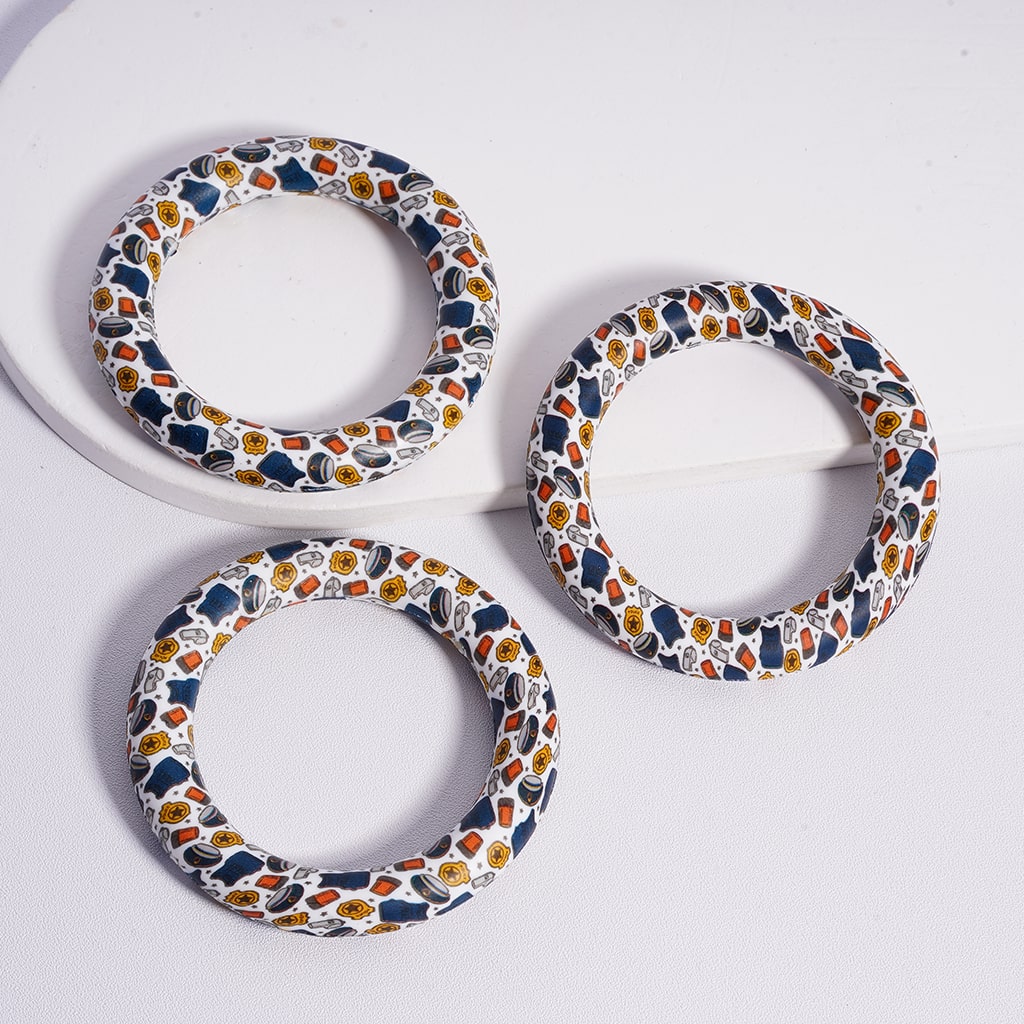 Silicone Ring Frame Bead Circle Round Soft Car Hanger Charm Loop Police Officers Series Prints 65mm