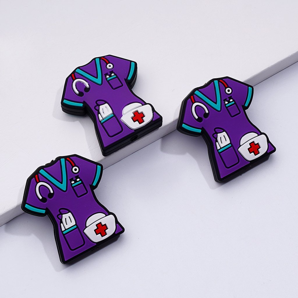 Teal Pink Color Nurse Uniform with Nurse Hat Stethoscope Silicone Focal Beads
