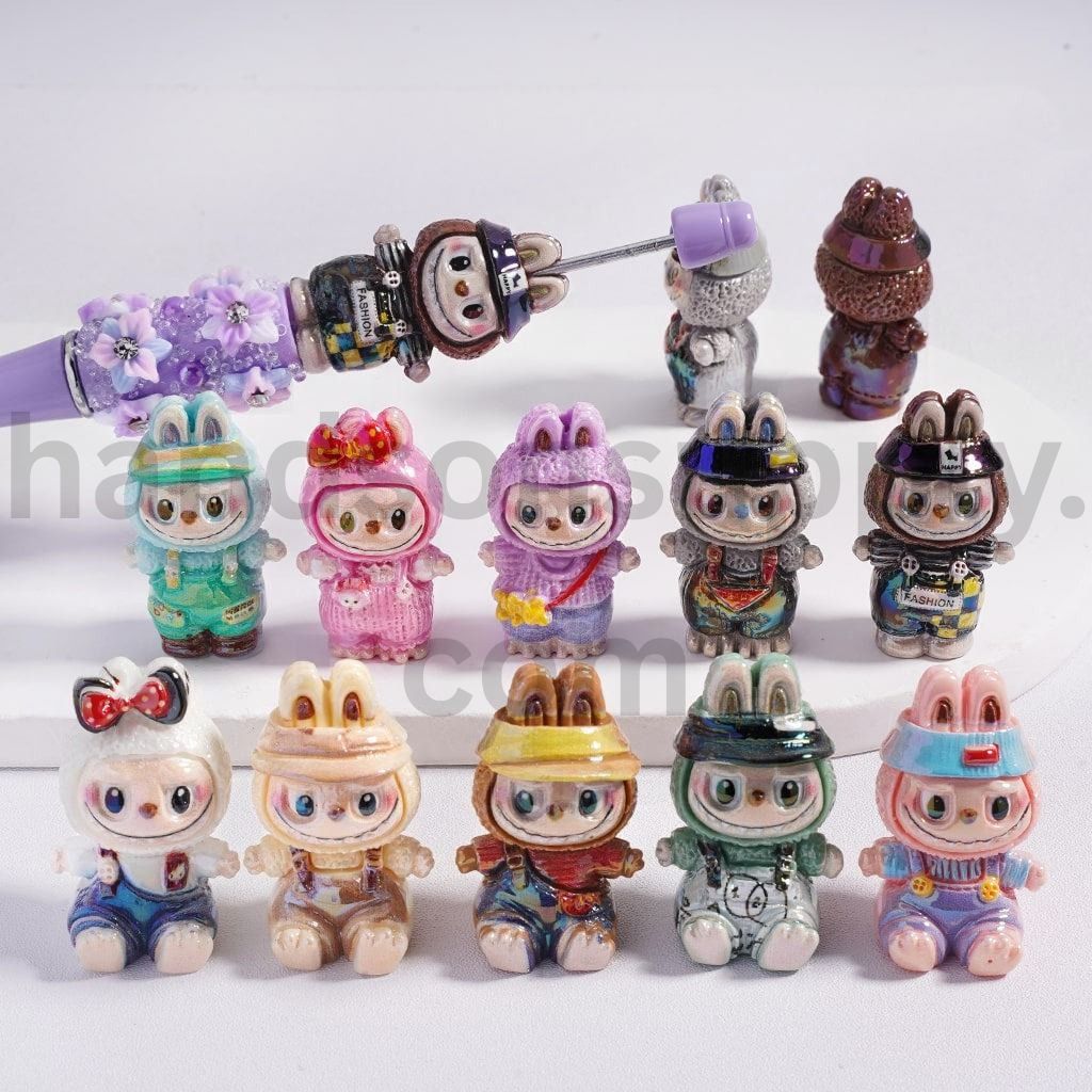 UV Coated Labub in Different Costumes & Bow Acrylic Beads Random Mix
