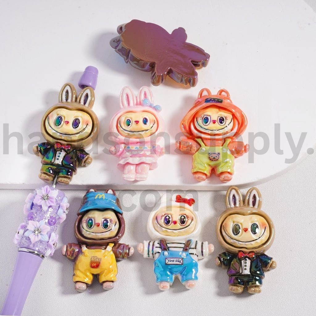 UV Coated Cute LBB Character Figures in Various Costumes Designs Flat Back Acrylic Beads Random Mix