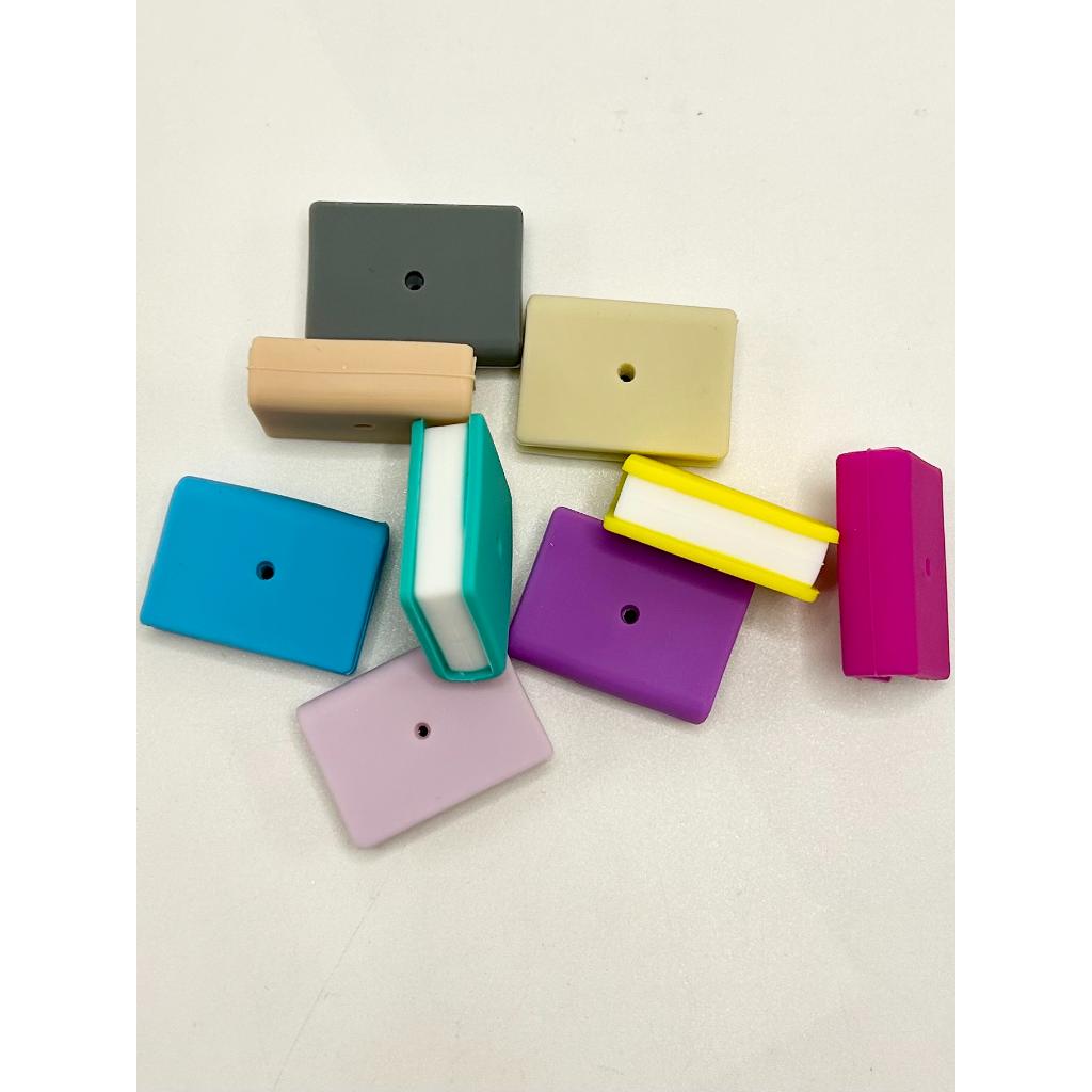 Various Colored Books Silicone Focal Beads, Two Holes, Random Mix
