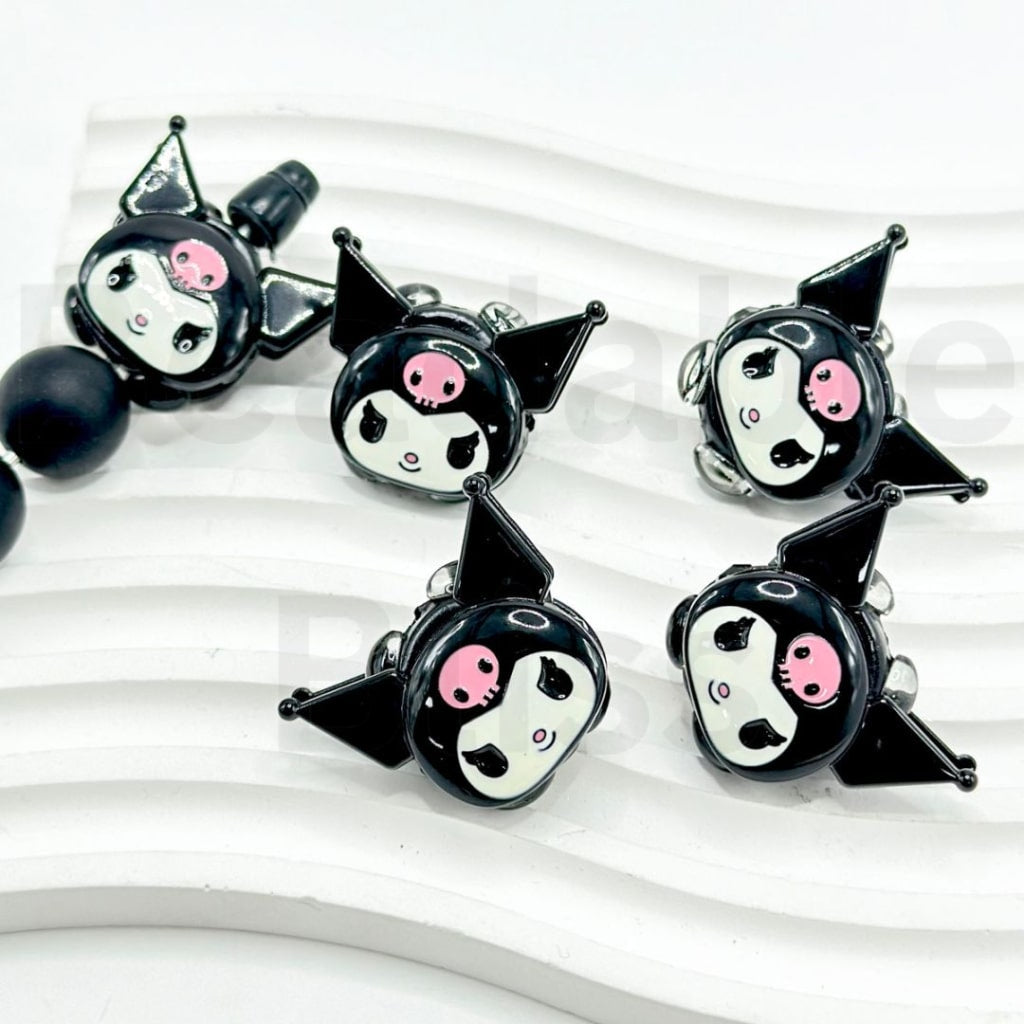 Vivid Cute Alloy Sanri Kurom Head with Dark Rhinestones Oval Pearls, Around 32*30MM
