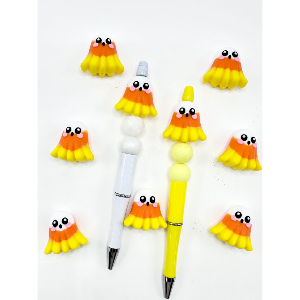 | Yellow Orange White 3D Cute Tricolor Ghost Silicone Focal Beads |
